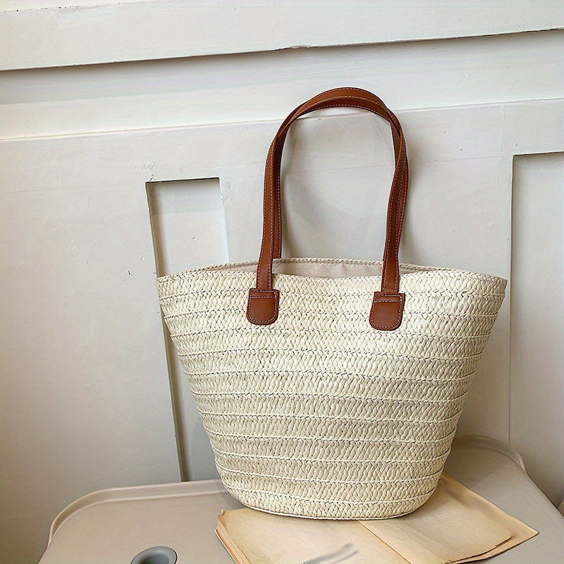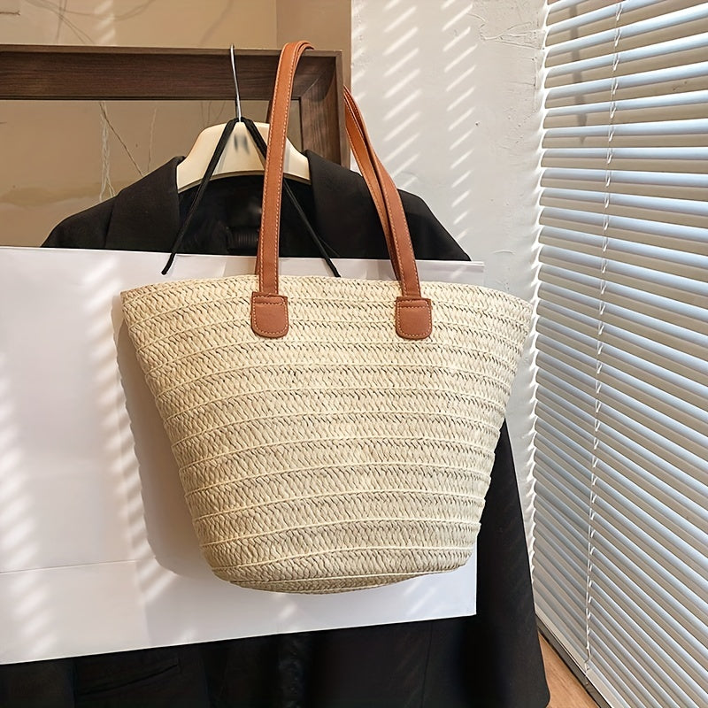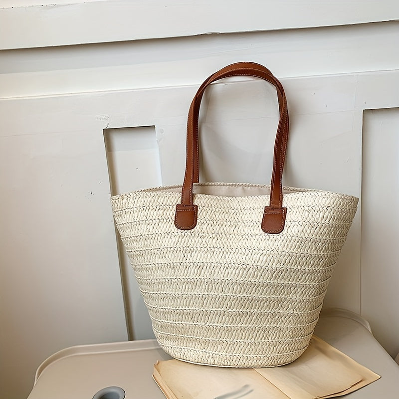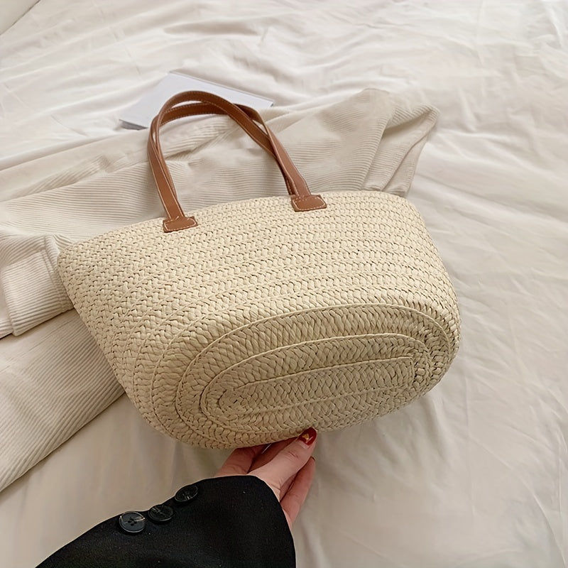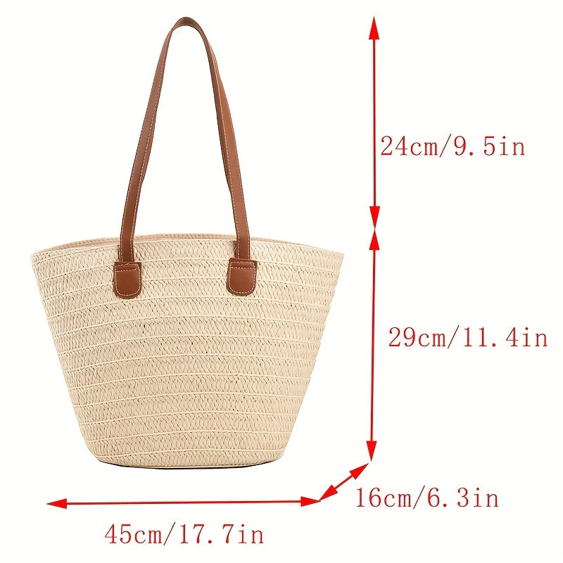 solvbao Straw Woven Tote Bag, Bamboo Handle Beach Bag, Boho Style Handbag For Travel Vacation