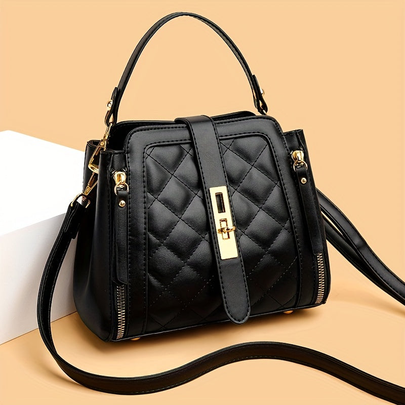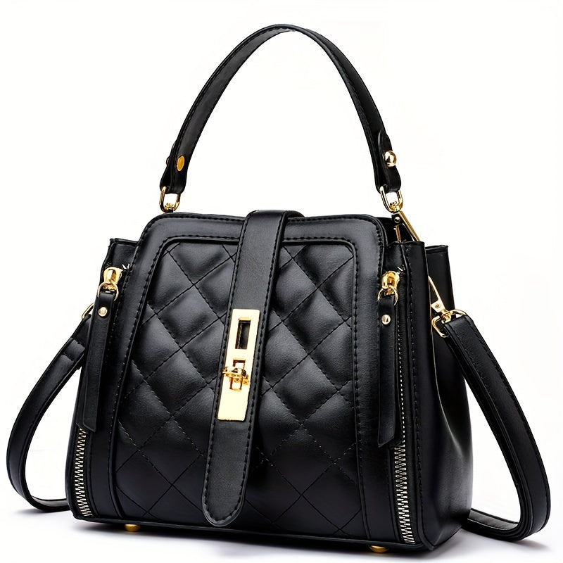 solvbao Stylish Argyle Quilted Handbag For Women, Retro PU Leather Crossbody Bag, Top Handle Zipper Purses