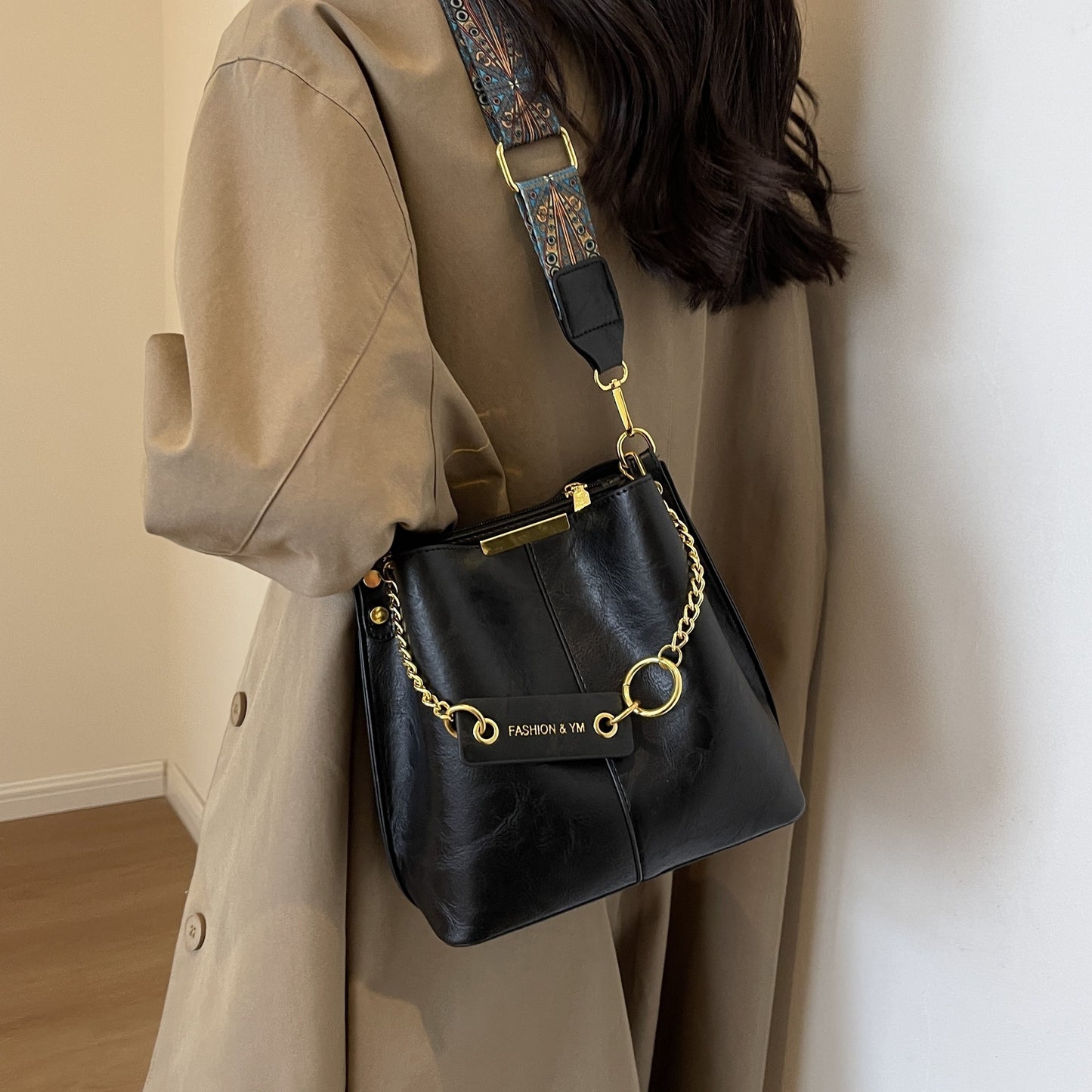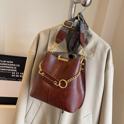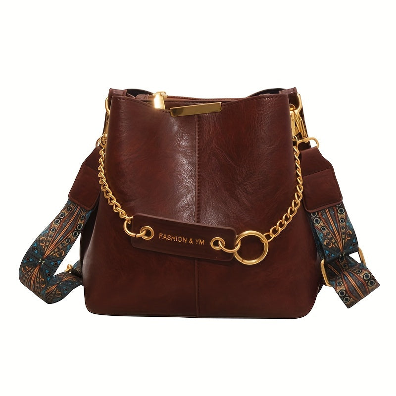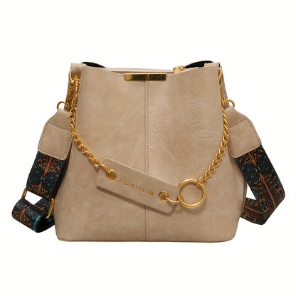solvbao Stylish PU Leather Bucket Bag, Solid Color Shoulder Bag With Compartment, Perfect Crossbody Bag For Daily Use