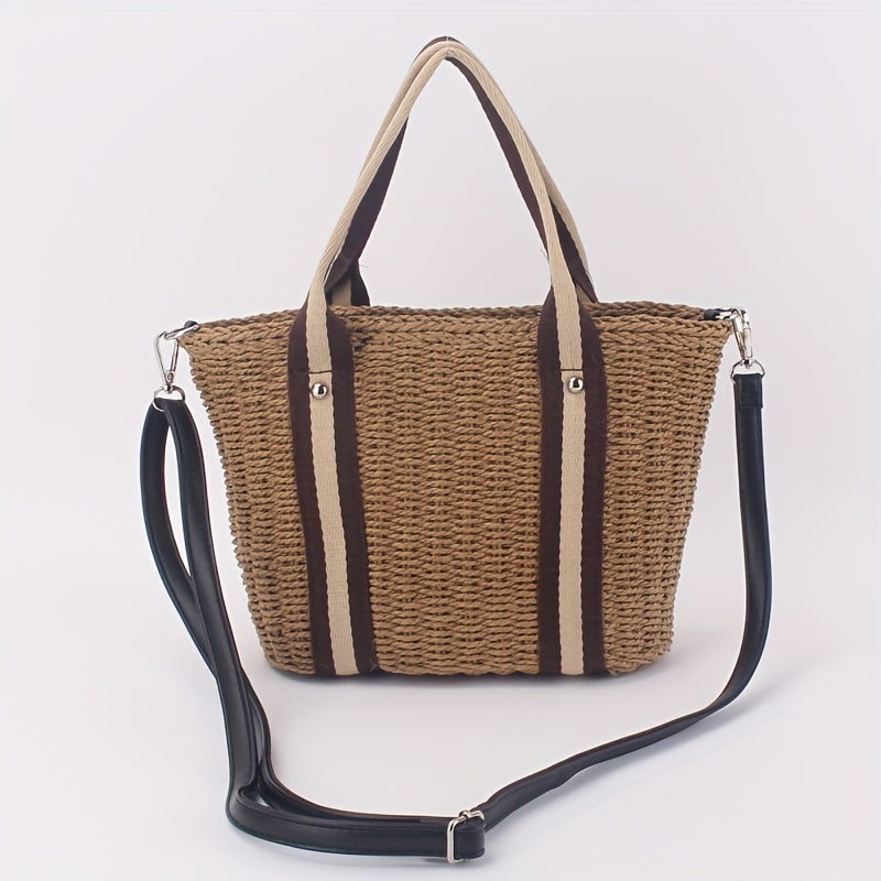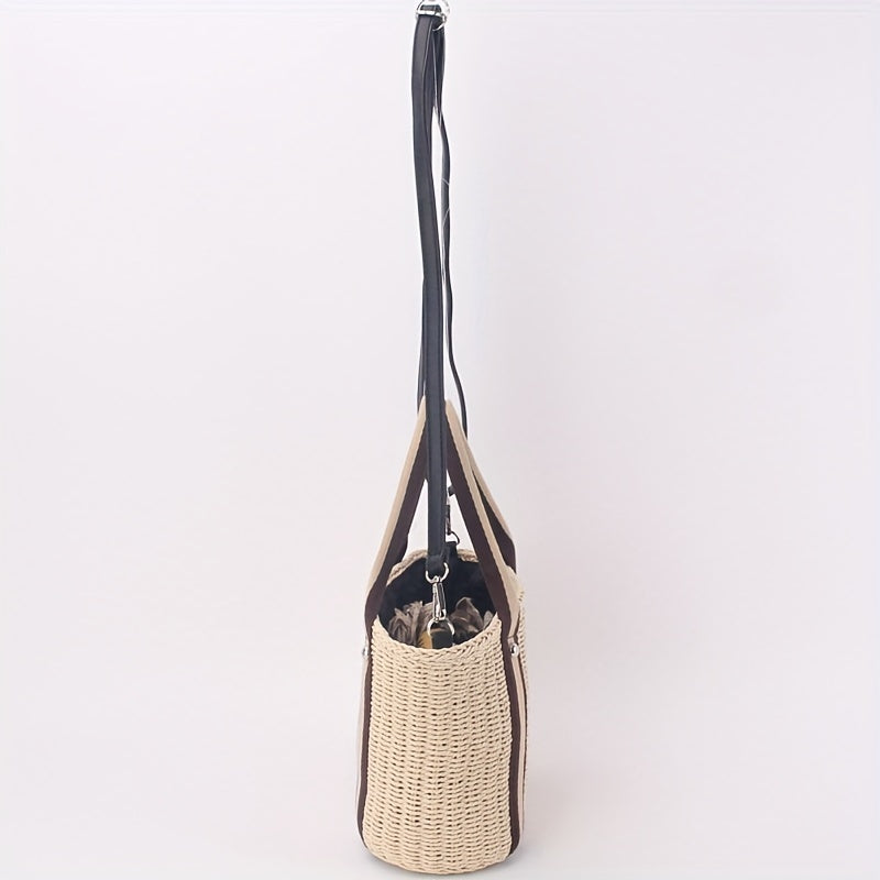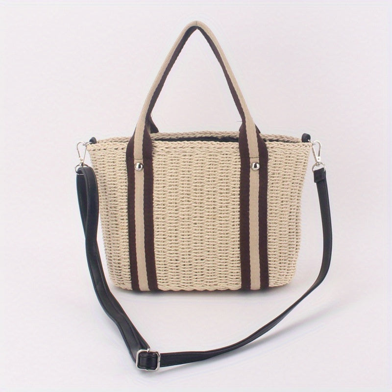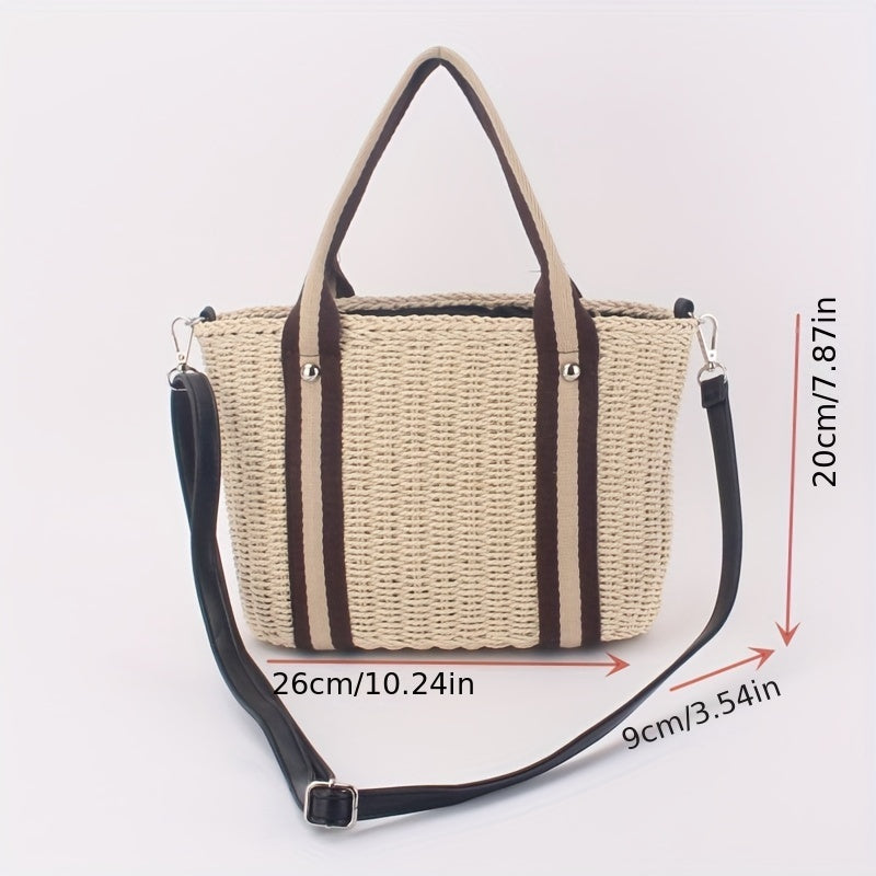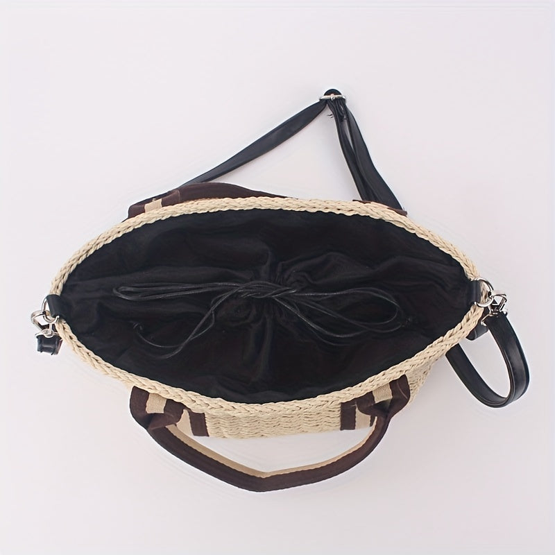 solvbao Summer Travel Holiday Beach Bag, Simple Fashion Straw Bag, Woven Satchel Drawstring Bag
