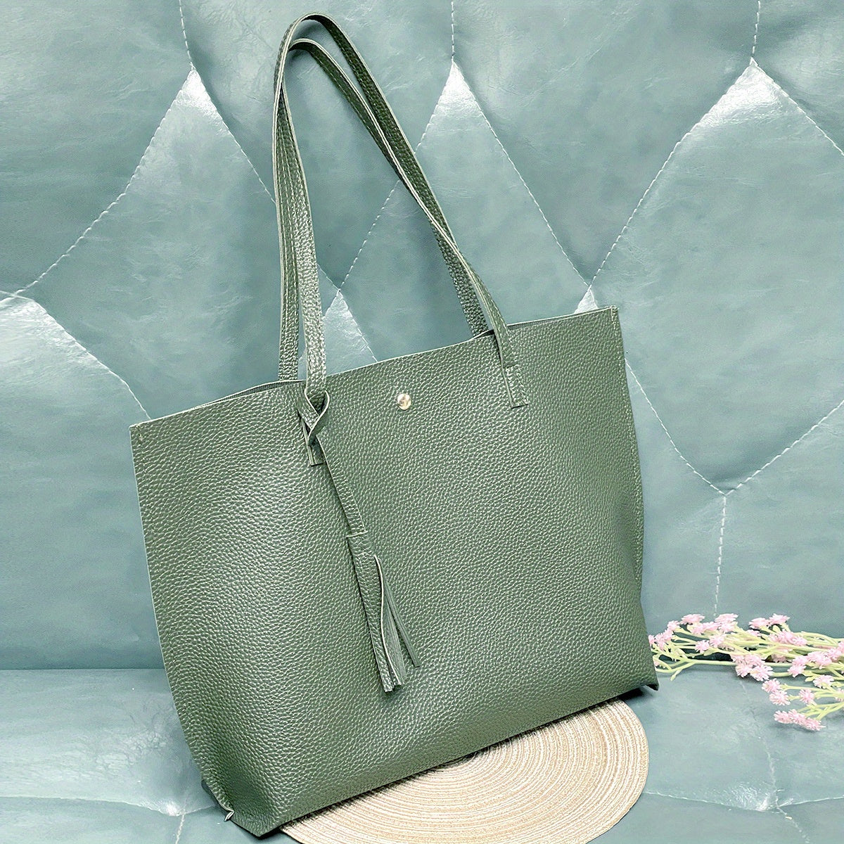 solvbao Tassel Tote Bag, Women's PU Large Capacity Shoulder Bag