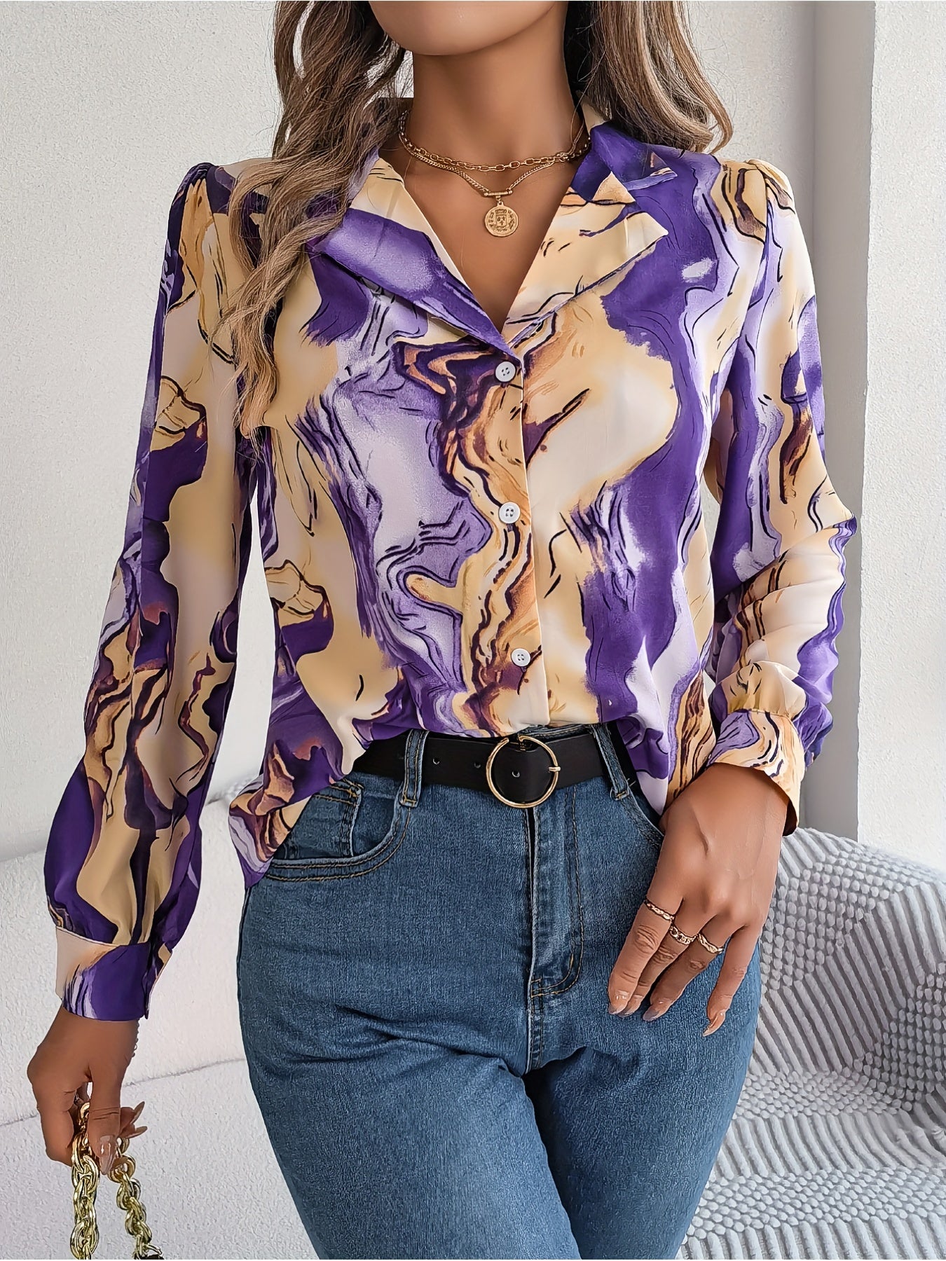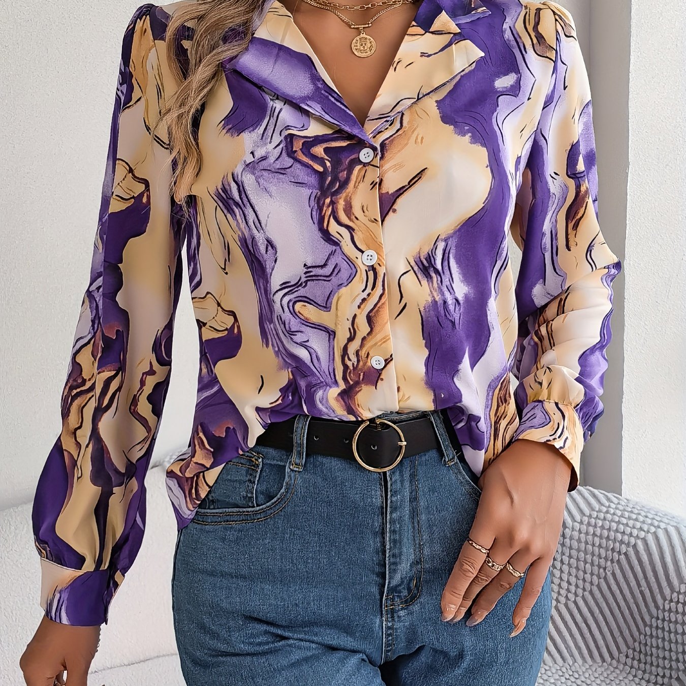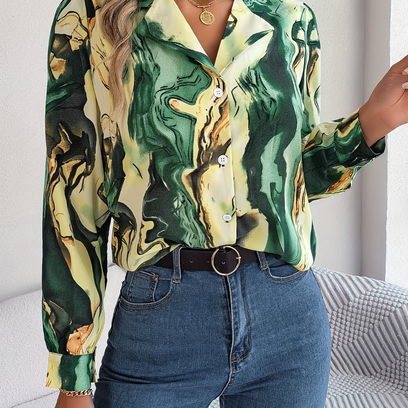 solvbaoGraphic Print Button Front Shirt, Casual Long Sleeve Shirt For Spring & Fall, Women's Clothing