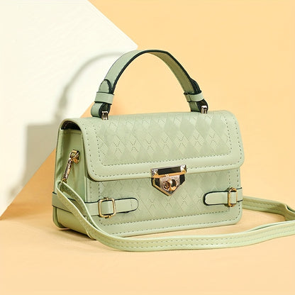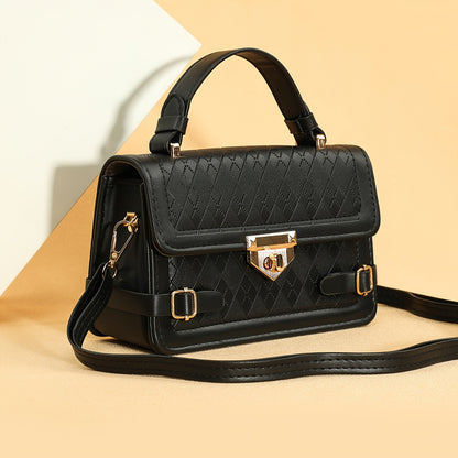 Stylish Argyle Embossed Handbag, Retro Square Crossbody Bag, Women's Shoulder Flap Purse With Turn Lock