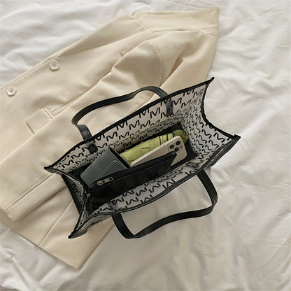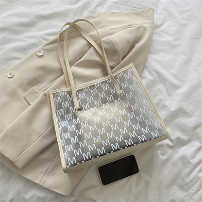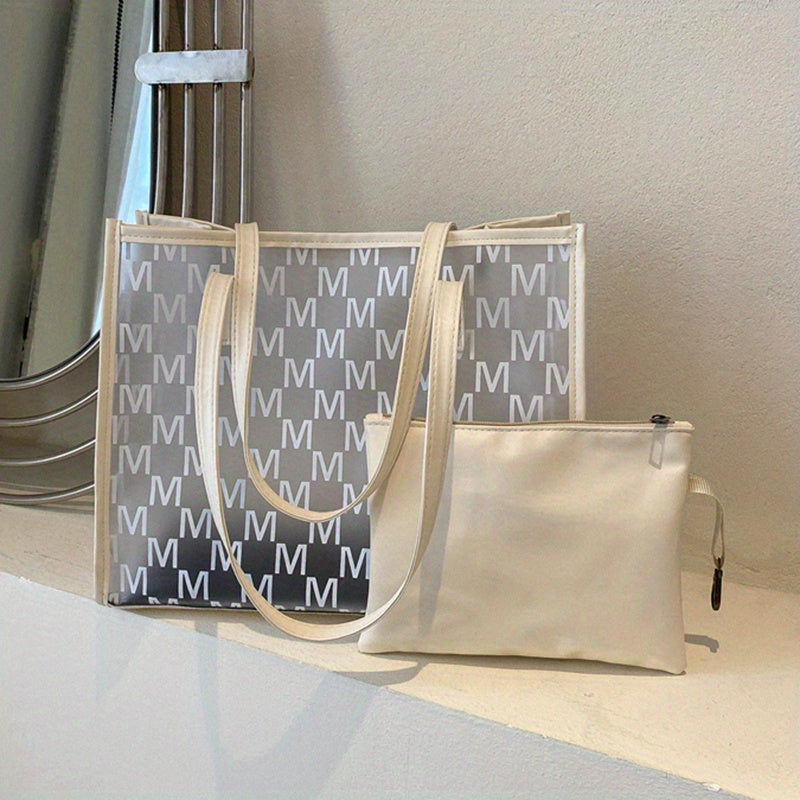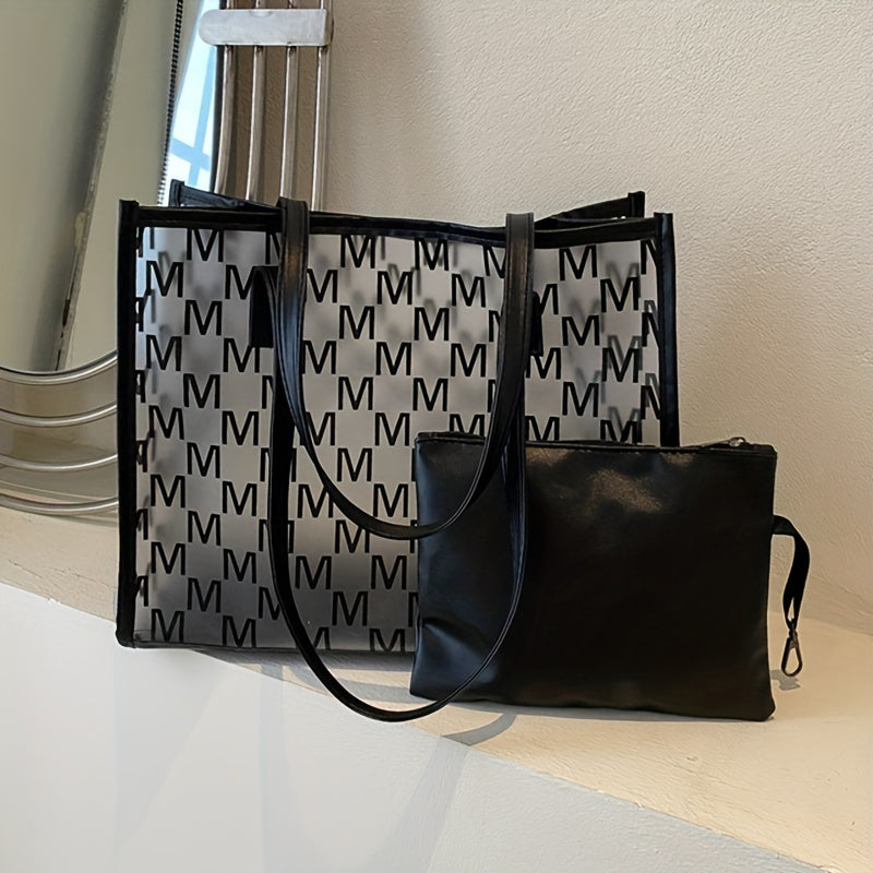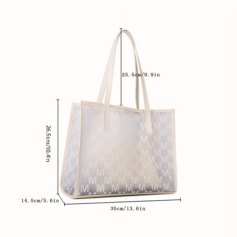 Transparent Letter Print Tote Bag, Large Capacity Clear Shoulder Bag, Women's Stylish Handbag With Inner Pouch For Travel & Beach