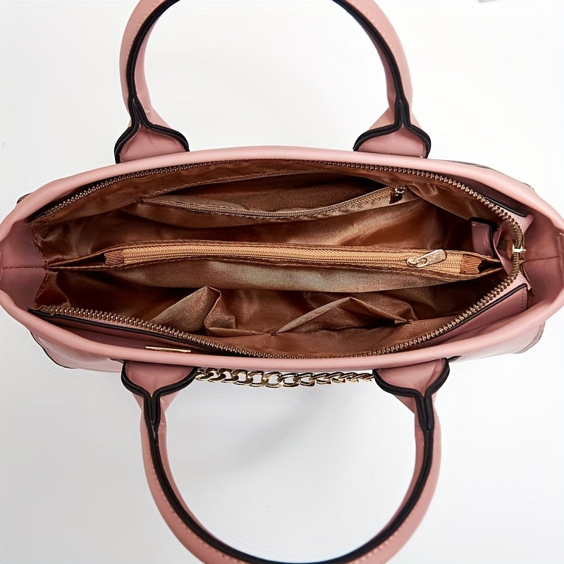 Trendy Handbag 2pcs Set, Elegant Geometric Pattern Tote Bag & Zip Around Wallet Set, Fashion Purse Set