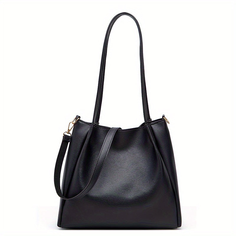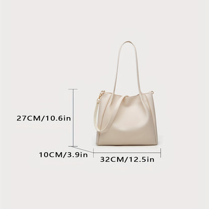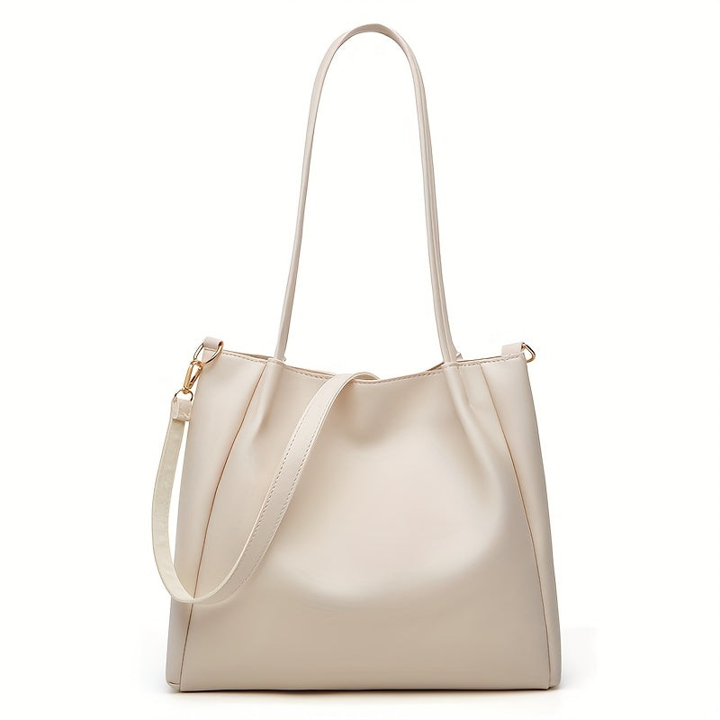 Trendy Large Capacity Tote Bag, Solid Color PU Leather Shoulder Bag, Perfect Underarm Bag For Commuting